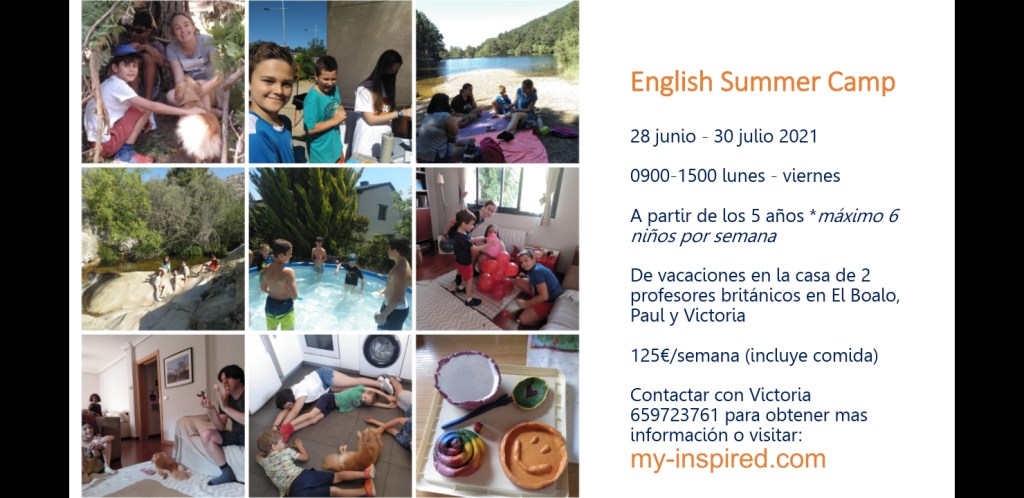 Excursiones, juegos en grupo, piscina, cocina, proyectos y arte, deporte y mucho mas. Todo en inglés con la familia de 2 profesores nativos británicos en El Boalo. Procuramos que todos disfrutamos de una semana juntos, de vacaciones sin prisas y horarios, pero a base de la comunicación solamente en inglés.